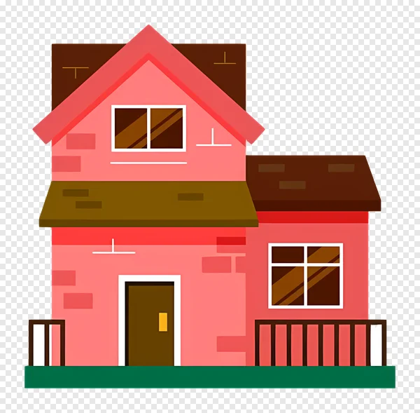 Discover our delightful flat design illustration of a charming two-story house, perfect for adding a touch of warmth to your digital projects. This free PNG features a soft pink exterior with subtle brick-like details, a classic brown gabled roof, and a welcoming front porch complete with white railings. With its clean lines and modern flat art style, this cartoon home is ideal for web design, educational content, real estate visuals, children's books, or engaging graphic presentations. The transparent background makes it easy to integrate into any design. Download this high-quality, free-to-use clipart for icons, infographics, or any creative endeavor needing a friendly residential building graphic.