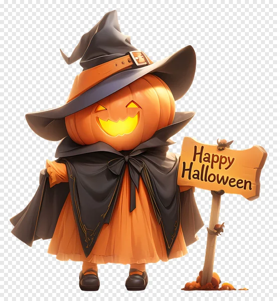 Download this adorable pumpkin witch illustration for free! Perfect for Halloween designs, spooky graphics, party invitations, social media posts, and more. This high-quality PNG features a charming jack-o'-lantern dressed as a witch, holding a 'Happy Halloween' sign. Enhance your Halloween projects with this festive and whimsical image – instant download available now!