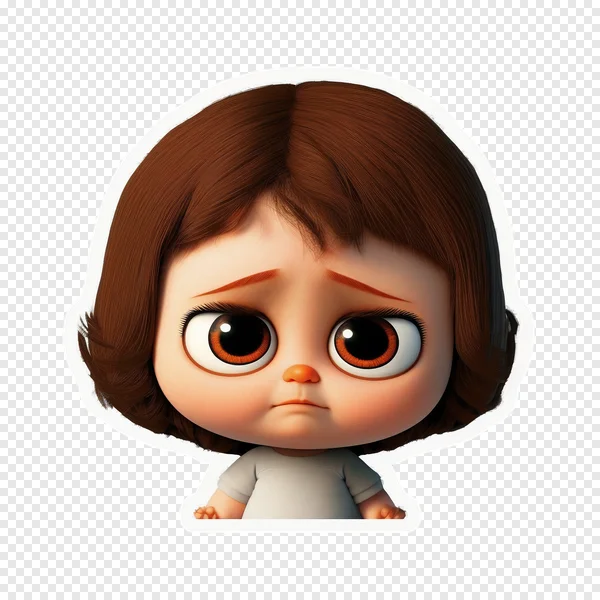 Download this free transparent PNG of an incredibly cute yet sad cartoon girl. Featuring expressive big brown eyes welling up with emotion, a delicate pout, and soft brown hair, this adorable character is perfect for conveying feelings of sadness, empathy, or slight disappointment. Ideal for social media posts, digital stickers, emotional reaction graphics, personal projects, or adding a touch of childlike vulnerability to your designs. Get this high-quality, transparent image instantly and add a sweet, melancholic touch to your creations!