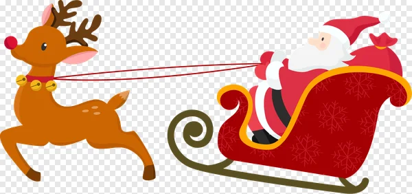 Bring festive cheer to your designs with this charming Santa Claus and Reindeer Sleigh PNG! This high-quality cartoon illustration features a jolly Santa in his red, snowflake-decorated sleigh, holding a bag of gifts, as he's pulled by a delightful brown reindeer with a bright red nose and jingling bells. The transparent background makes it perfect for seamless integration into Christmas cards, digital art, website banners, holiday crafts, or educational materials. Download this magical Christmas clipart for free and add a touch of holiday enchantment to all your projects!