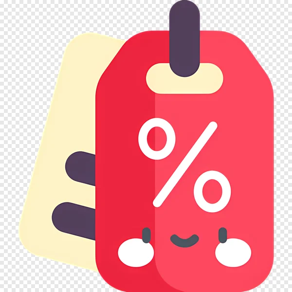 Download this adorable and vibrant red discount price tag PNG icon for free! Featuring a clear white percentage symbol and a charming smiling face, this flat design illustration is perfect for highlighting sales, special offers, and promotional deals. Ideal for e-commerce websites, online stores, marketing campaigns, social media graphics, presentations, and any project needing a visually appealing way to announce discounts. Get your high-quality, transparent PNG today to make your promotions stand out and attract customers!