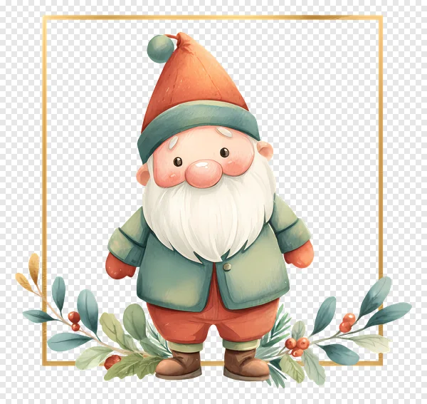 Add whimsical charm to your holiday projects with this adorable watercolor Christmas gnome PNG. This high-quality, free transparent image features a cheerful gnome in a red hat and green jacket, perfectly framed by an elegant gold rectangle and festive evergreen branches adorned with vibrant red berries. Ideal for digital designs, greeting cards, social media posts, scrapbooking, and other holiday crafting. Download this magical character today to create enchanting festive memories with ease!