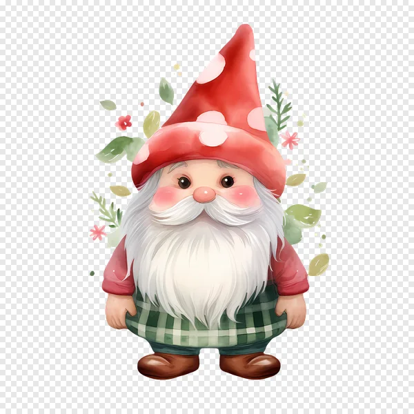 Discover this adorable watercolor gnome PNG, perfect for adding a touch of whimsy to your creative projects! Featuring a charming gnome with a distinctive red mushroom-spotted hat, a flowing white beard, rosy cheeks, and stylish green plaid attire, this high-quality transparent background image is ideal for digital art, scrapbooking, invitations, holiday cards, garden-themed designs, or festive decorations. Download this delightful fantasy character for free and bring a magical touch to your next design. Enhance your crafts, social media graphics, or personal projects with this cheerful, free-spirited woodland elf today!