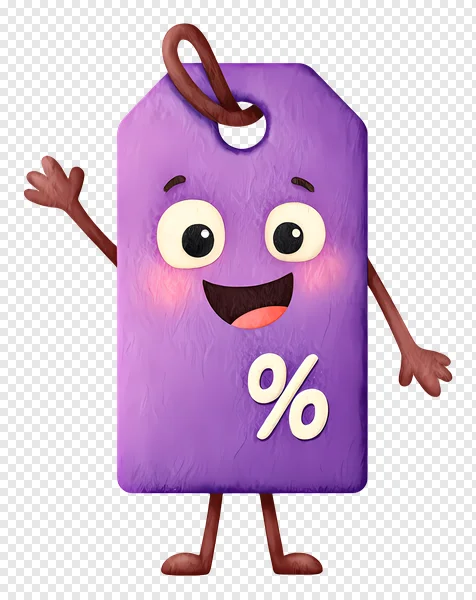 Bring a splash of fun to your sales and promotions with this adorable waving purple discount tag PNG! Featuring a cheerful cartoon face, rosy cheeks, and a prominent percentage symbol, this happy price tag character is perfect for announcing special offers, flash sales, or promotional events. Its friendly pose and vibrant purple color will instantly grab attention. Ideal for e-commerce sites, social media campaigns, blog posts, or any digital marketing material. Download this high-quality, transparent PNG for free and add a delightful touch to your next big announcement! Elevate your marketing visuals effortlessly.