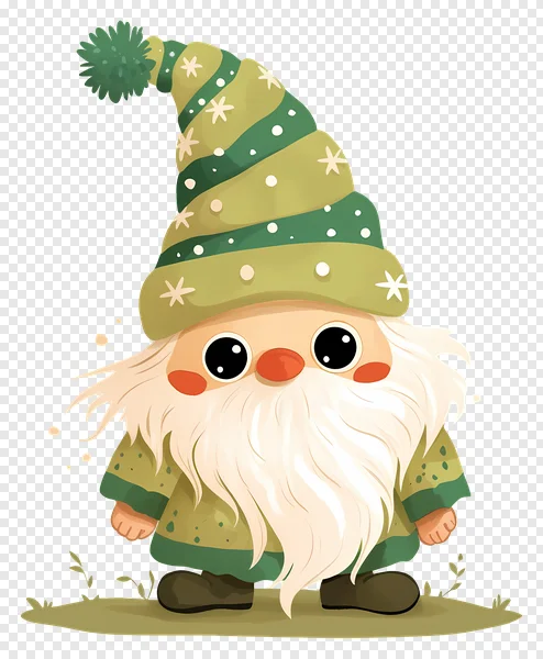 Discover this adorable whimsical gnome PNG, perfect for adding a touch of magic to your creative projects! Featuring a charming green striped hat with a fluffy pompom, a long flowing white beard, and a friendly red nose, this cute fantasy character illustration comes with a transparent background for easy integration. Ideal for digital scrapbooking, invitations, holiday designs, children's crafts, or unique decorations. Download this high-quality, free PNG and bring this lovable little gnome to life in your designs!