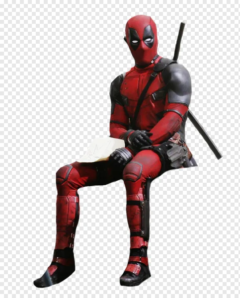 Download this high-quality Deadpool PNG image for free! Featuring the iconic Merc with a Mouth in a relaxed, seated pose with his katanas, this transparent background image is perfect for fan art, graphic design, memes, and more. Enhance your projects with this versatile and popular superhero character. Get your free Deadpool PNG now and unleash your creativity!
