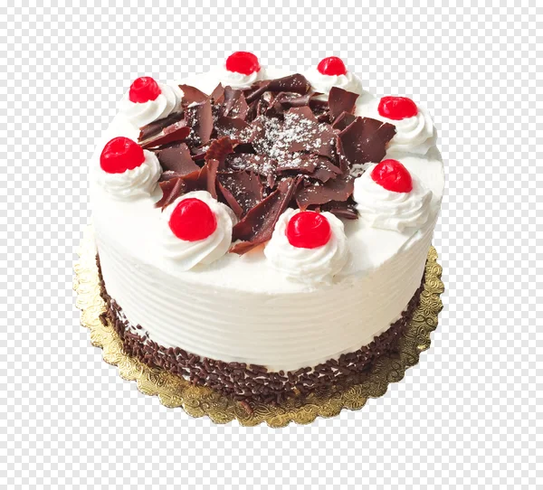 Indulge in the irresistible allure of our high-quality Black Forest Cake PNG image. This delectable round dessert features fluffy white whipped cream frosting, rich dark chocolate shavings dusted with powdered sugar, and vibrant red maraschino cherries perfectly crowning each swirl. The sides are elegantly adorned with chocolate sprinkles, all resting on a decorative gold scalloped cake board. Its isolated background makes it ideal for seamless integration into any design project. Download this mouth-watering, free transparent PNG for your bakery menus, invitations, websites, or personal creative ventures. Perfect for birthdays, holidays, or any sweet celebration!