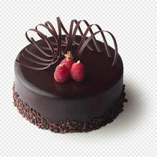 Indulge in the luxurious appeal of this free PNG image featuring a decadent dark chocolate cake. This gourmet delight boasts a smooth, glossy chocolate glaze, elegant dark chocolate curls, and three vibrant fresh raspberries delicately accented with edible gold leaf. The sides are adorned with rich chocolate shavings, adding to its exquisite texture. Perfect for bakeries, food blogs, menus, invitations, or any creative project requiring a high-quality dessert image with a transparent background. Enhance your designs with this visually stunning, SEO-friendly chocolate cake PNG. Download this premium, free-to-use image today to add a touch of sweet sophistication to your work!
