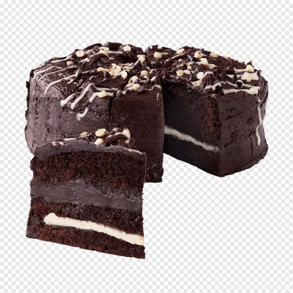 Indulge your audience with this mouth-watering free PNG of a decadent layered chocolate cake. Featuring rich chocolate cake layers, a creamy white filling, and luscious chocolate frosting adorned with elegant white drizzles and crunchy nut toppings, this transparent image is perfect for any digital project. Download this high-quality, high-resolution dessert PNG for free to enhance your website, social media posts, presentations, menus, or any creative design. A must-have for food bloggers, bakeries, or anyone needing a delicious visual for sweet treats. Get your free download now!