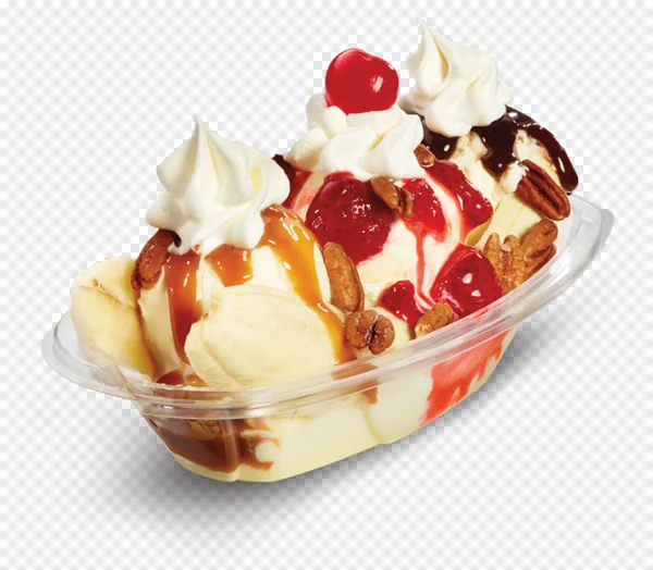 Indulge in this vibrant, high-quality Banana Split PNG image, perfect for your next design project! Featuring creamy vanilla ice cream, ripe banana halves, luscious caramel sauce, strawberry topping, and rich chocolate fudge, all adorned with fluffy whipped cream, crunchy pecans, and a bright red maraschino cherry. This transparent background PNG is ideal for menus, websites, social media posts, blog graphics, or any digital content needing a sweet and appetizing touch. Download this mouth-watering dessert image for free and add a delightful pop to your visuals. Get your free banana split PNG today and sweeten up your designs!