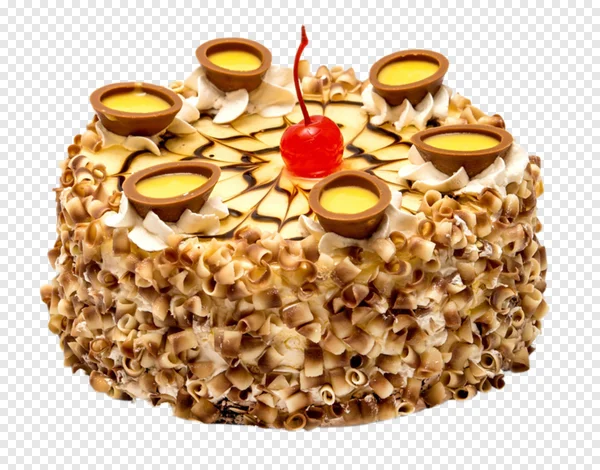 Indulge your senses with this exquisite PNG image of a delicious cake, perfect for any celebration! This gourmet dessert features a rich yellow base topped with elegant chocolate swirls, delicate whipped cream, and tempting chocolate cups filled with a creamy custard. A vibrant red cherry crowns this masterpiece, while the sides are adorned with rustic chocolate shavings and curls. Download this high-quality, transparent background PNG for free to enhance your graphic designs, menus, blog posts, party invitations, or digital marketing materials. Ideal for bakeries, food bloggers, event planners, or anyone needing a mouthwatering visual. Get your free cake PNG today!