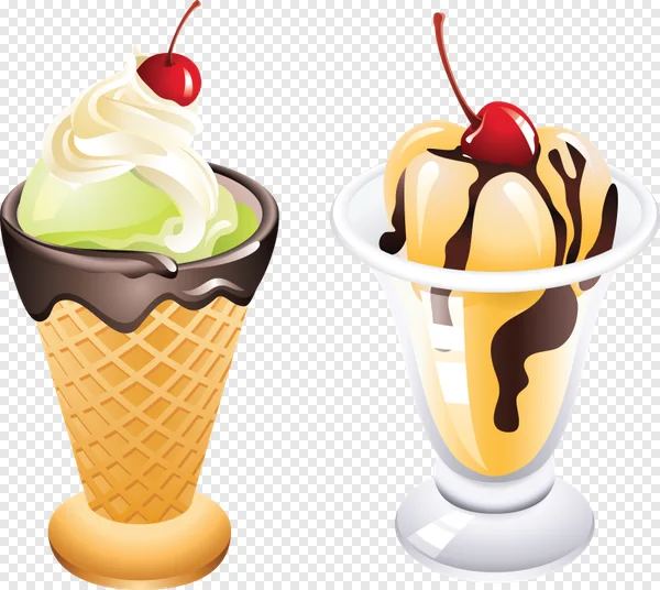 Indulge in this delightful free PNG featuring two iconic frozen desserts: a vibrant green ice cream cone topped with luscious whipped cream and a red cherry, alongside a classic vanilla ice cream sundae drenched in rich chocolate syrup, also crowned with a juicy cherry. Both illustrations are rendered with vibrant colors and crisp details on a transparent background, making them perfect for graphic design projects, menu creations, website banners, summer party invitations, or any sweet-themed content. Download this high-quality, SEO-friendly sweet treat clipart for free and add a delicious, refreshing touch to your creative endeavors!
