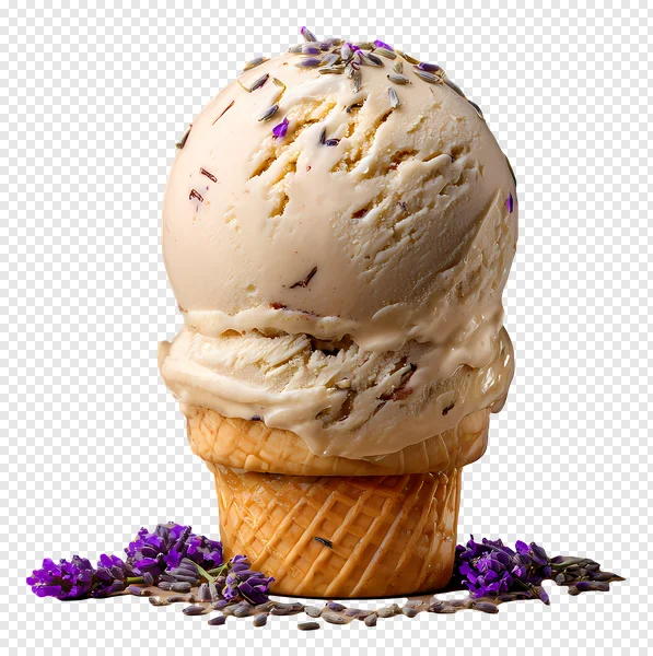 Indulge your senses with this stunning, free high-quality PNG image featuring a decadent scoop of lavender ice cream in a crisp waffle cone, delicately adorned with vibrant purple petals. Set against a striking black background, this visually appealing dessert photo is perfect for food blogs, restaurant menus, summer promotions, social media posts, or graphic design projects. Download this sweet, refreshing treat to add a touch of elegance and flavor to your creative work. Ideal for anyone seeking delicious ice cream visuals or unique flavor combinations. Get your free PNG download today!
