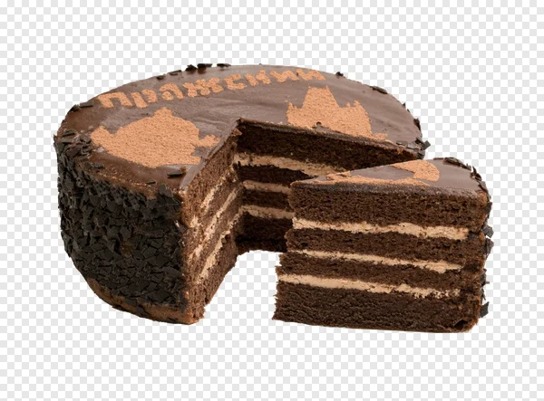 Indulge your senses with this stunning, high-quality PNG image of a delectable layered chocolate cake, complete with a perfectly cut slice. This rich dessert features smooth dark chocolate frosting, delicate cream filling between moist chocolate sponge layers, and crunchy chocolate shavings on the sides. The top is beautifully adorned with a 'ПРАЗДНИК' (Prazdnik - Celebration) inscription in cocoa powder, making it ideal for birthday, holiday, or any special occasion designs. Download this free transparent background PNG to enhance your recipes, menus, party invitations, blog posts, or digital projects. Perfect for food bloggers, graphic designers, and anyone looking for a mouth-watering visual.