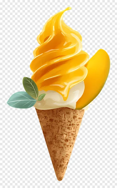 Tags: creamy delicious dessert food graphic food illustration frozen treat fruit ice cream cone mango ice cream mango swirl mint refreshing soft serve summer treat sweet snack transparent PNG tropical dessert vanilla ice cream waffle cone yellow