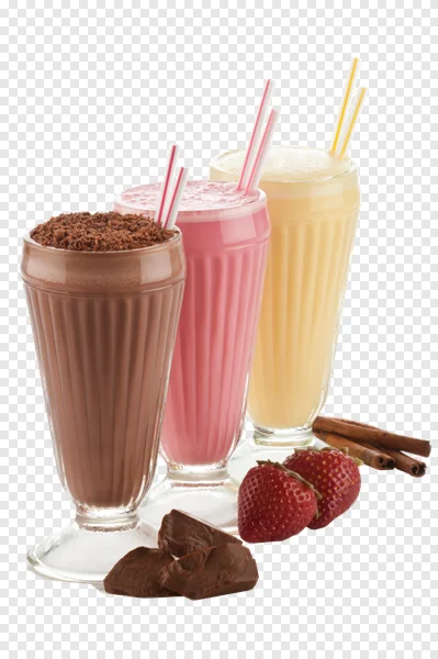 Dive into refreshment with this vibrant PNG image featuring a delightful trio of classic milkshakes! Enjoy a rich chocolate shake topped with delicate shavings, a creamy pink strawberry shake, and a smooth golden vanilla shake, each served in a tall glass with a straw. This high-quality, transparent background graphic also includes whole strawberries, decadent chocolate chunks, and aromatic cinnamon sticks, perfect for enhancing your menus, recipe blogs, marketing materials, or design projects. Download this sweet treat for free and add a tempting touch to any creative work!