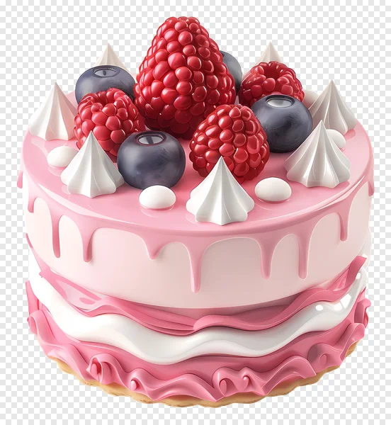 Indulge in this stunning free PNG image of a vibrant pink berry celebration cake, perfect for adding a touch of sweetness to any design. This eye-catching dessert features luscious pink frosting with elegant drips, generously topped with plump red raspberries, juicy blueberries, and delicate white meringue swirls. Its multi-layered design with decorative pink and white ruffles makes it ideal for birthday invitations, party flyers, digital menus, website graphics, or social media posts. Download this high-quality transparent background image now to effortlessly enhance your creative projects with a delicious and festive flair. Get your free PNG today!