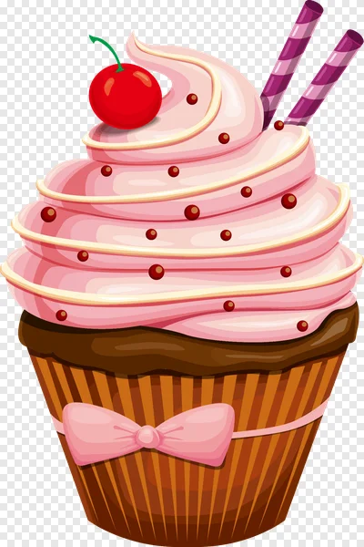 Indulge your sweet tooth with this adorable, high-quality PNG image of a delectable cupcake! Featuring a generous swirl of luscious pink frosting, topped with a vibrant red cherry, delicate red sprinkles, and two stylish purple-striped wafer sticks, this charming dessert illustration is perfect for any occasion. The cupcake sits in a classic brown striped liner, elegantly adorned with a pretty pink bow. Ideal for bakery websites, birthday party invitations, food blogs, social media posts, or any design project needing a touch of sweetness. Download this free PNG with a transparent background for instant use in your creative endeavors!