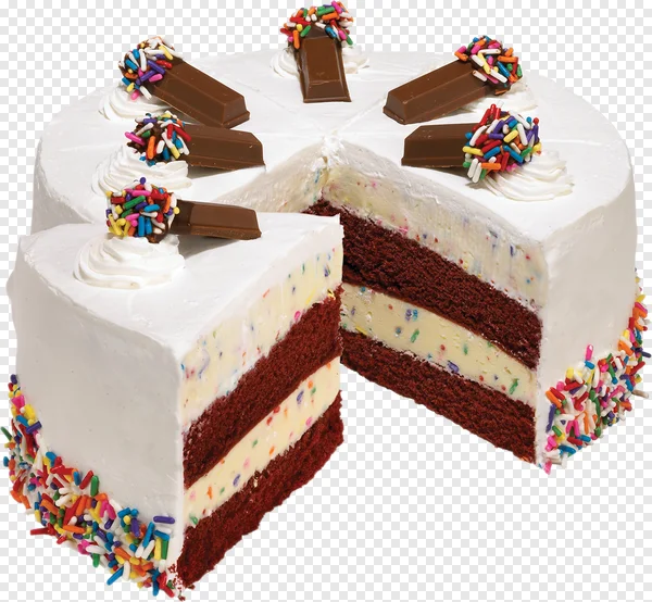 Download this mouth-watering, free PNG image of a vibrant Red Velvet and Funfetti Cheesecake Layer Cake! This festive dessert features rich red velvet cake layers, creamy sprinkle-infused cheesecake layers, smooth white frosting, and is beautifully topped with colorful sprinkles and chocolate bars. A perfect slice has been removed, showcasing its delicious interior. Ideal for birthday invitations, party flyers, food blogs, dessert menus, digital art projects, or any celebratory design. Get your high-quality, transparent background image now to add a sweet and indulgent touch to your creative work!