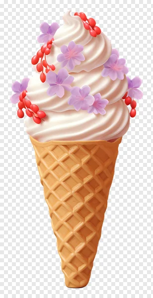 Elevate your designs with this charming, high-quality free PNG of a soft serve ice cream cone. This delightful illustration features creamy, light-colored ice cream beautifully swirled into a textured waffle cone, adorned with delicate purple flowers and vibrant red berries. With its transparent background, this clipart is perfect for a wide range of creative projects, including digital art, website design, social media graphics, blog posts, menus, party invitations, and more. A sweet symbol of summer and enjoyment, this free download adds a touch of whimsical elegance to any visual content. Get this delicious dessert PNG instantly and bring your ideas to life!