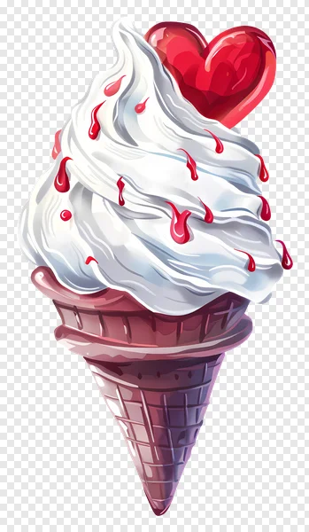 Indulge your creative projects with this charming free PNG of a delicious soft serve ice cream cone. Featuring a creamy white swirl, vibrant red syrup drips, and a glossy red heart topping, this sweet treat is perfect for capturing feelings of love and celebration. Ideal for Valentine's Day, romantic themes, food blogs, menus, party invitations, or any design needing a touch of delightful sweetness. Download this high-quality, transparent background clipart instantly for personal and commercial use and add a festive, yummy vibe to your designs today!
