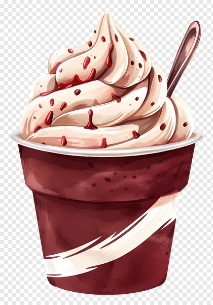 Indulge in this mouth-watering, high-quality Soft Serve Ice Cream PNG image, perfect for adding a sweet touch to your designs! Featuring creamy vanilla (or similar) soft serve topped with vibrant red drizzle and a metallic spoon, all nestled in a stylish red cup with white accents. This free transparent clipart is ideal for menus, social media graphics, websites, digital art, or any project needing a delightful dessert illustration. Download now and satisfy your creative cravings with this delicious, ready-to-use PNG file!