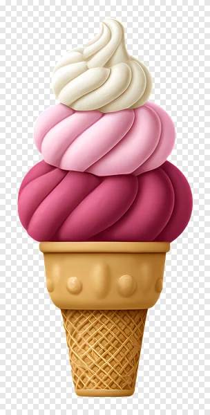 Indulge in this mouth-watering free PNG of a triple-layered soft-serve ice cream cone! Featuring luscious swirls of creamy white, light pink, and vibrant magenta flavors atop a crisp, golden waffle cone. This high-quality, transparent background image is perfect for dessert menus, sweet treat promotions, summer event graphics, or any design needing a delightful, refreshing touch. Download this irresistible frozen dessert graphic today to satisfy your design cravings and add a pop of color to your projects, ready for instant use!