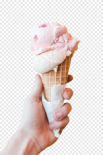 Indulge in this vibrant PNG image featuring a hand holding a delicious two-scoop ice cream cone, perfect for your summer projects! Enjoy the creamy pink (strawberry) and light brown (vanilla or cookie dough) scoops piled high on a crisp waffle cone, wrapped in white paper. This high-quality, transparent background PNG is ideal for graphic designers, content creators, bloggers, and marketers. Download it for free to enhance your website, social media posts, presentations, menus, or any design celebrating sweet treats, summer, or desserts. A truly irresistible visual for tempting your audience!