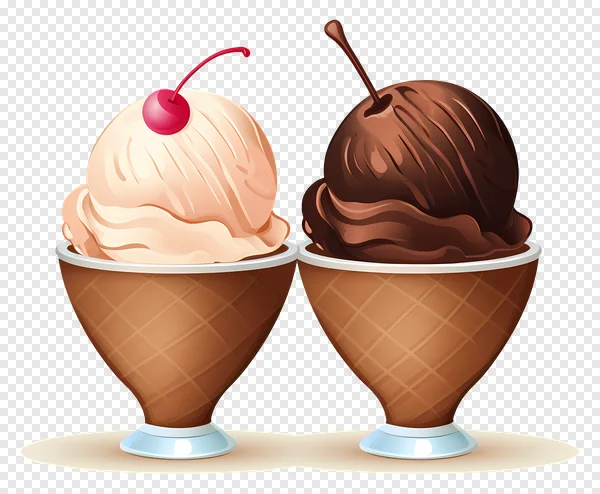 Indulge in this delightful free PNG image featuring two irresistible ice cream scoops! One creamy vanilla topped with a vibrant red cherry, and one rich chocolate scoop with a matching chocolate cherry, both served in classic waffle-textured cups. Perfect for enhancing your digital projects, food blogs, menus, or promotional materials. Download this high-quality, transparent background ice cream clip art for free and add a sweet touch to your designs. Ideal for summer themes, dessert recipes, and more!