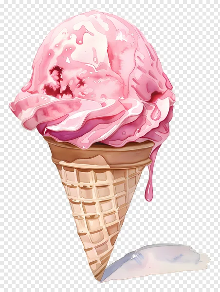 Indulge in this delightful free melting pink ice cream cone PNG with a transparent background! This high-quality watercolor illustration captures the sweet essence of summer, featuring a single scoop of vibrant pink ice cream richly dripping over a classic waffle cone. Perfect for adding a touch of whimsy and sweetness to your graphic design projects, food blogs, party invitations, social media posts, or any digital creation. Download this vibrant, mouth-watering dessert graphic instantly for personal and commercial use and bring your ideas to life with a splash of color and fun.