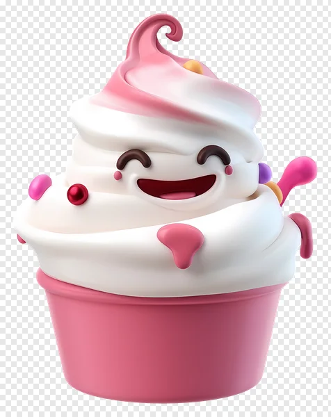 Download this adorable free PNG of a smiling ice cream cupcake! This delightful 3D rendered dessert features creamy white swirls with vibrant pink accents, topped with colorful sprinkles and a cheerful, emoji-like face. It's the perfect sweet graphic to bring joy to any project, whether for websites, apps, presentations, social media, or digital art. Enjoy the high-quality image with its transparent background, allowing for seamless integration into your designs. Get your free cute dessert PNG today and add a playful, delectable touch to your visual content!