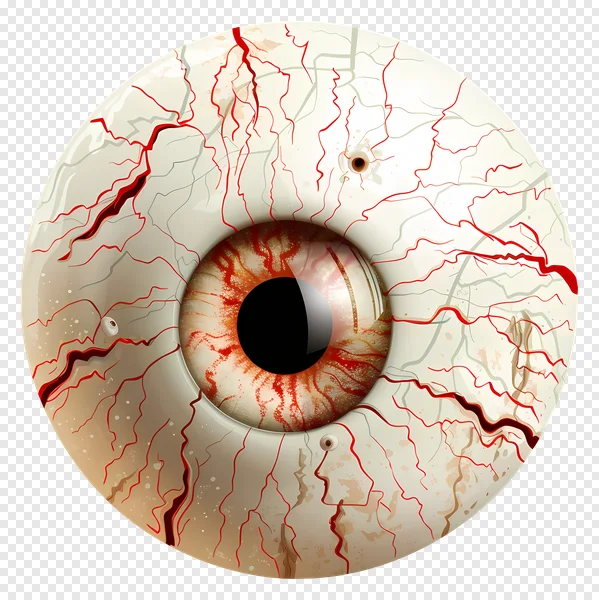 Dive into the macabre with our free, high-quality transparent PNG of a detailed gory bloodshot eyeball. This unsettling eye graphic features intricate red veins, an inflamed iris with reddish hues, a dark pupil, and a slightly textured sclera with minor blemishes. Perfect for Halloween designs, horror game assets, spooky posters, medical illustrations, or adding a creepy touch to any creative project. Download this captivating and chilling image to create truly haunting visuals and give your audience a fright!