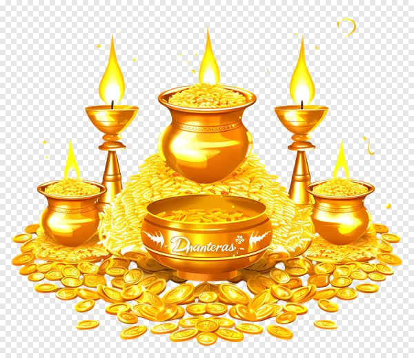 Tags: Deepavali Dhanteras Dhanteras PNG Diwali Indian festival auspicious celebration coins decorative diyas festive free PNG gold gold coins golden lamps oil lamps pot prosperity traditional wealth