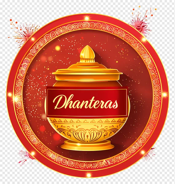 Celebrate prosperity and good fortune with our exquisite Dhanteras Golden Pot PNG image, available for free download! This high-quality, transparent illustration features a shimmering golden kalash, a traditional Indian pot, beautifully inscribed with 'Dhanteras.' It's encased within a vibrant red and gold circular frame adorned with intricate traditional patterns, sparkling lights, and festive accents. Perfect for creating auspicious Diwali greetings, engaging social media posts, eye-catching banners, invitations, or any digital design project requiring a touch of Hindu festivity. Download this stunning graphic to instantly add an ornate and celebratory element to your content, symbolizing wealth and new beginnings. Enhance your festive designs with this free Dhanteras Kalash PNG today!