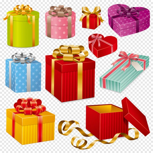 Download this vibrant collection of high-quality PNG gift boxes for free! This diverse set features a variety of presents in different shapes – including classic square, elegant round, and romantic heart-shaped boxes. Discover an array of colors like red, green, blue, pink, purple, and yellow, adorned with beautiful ribbons and bows. Perfect for adding a festive touch to your holiday projects, birthday invitations, anniversary designs, or any celebration graphic. With patterns like polka dots, stripes, and stars, and even an open gift box with a spilling ribbon, this transparent image is ideal for all your creative needs. Get your free gift box PNGs today!