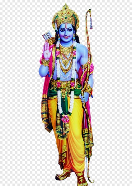 Tags: Abhaya Mudra Ayodhya Dhanush Hindu God Hindu deity Indian mythology Lord Rama Ram Vishnu avatar blue skin bow and arrow cutout image free download full body gold jewelry golden crown religious image spiritual art traditional attire transparent PNG