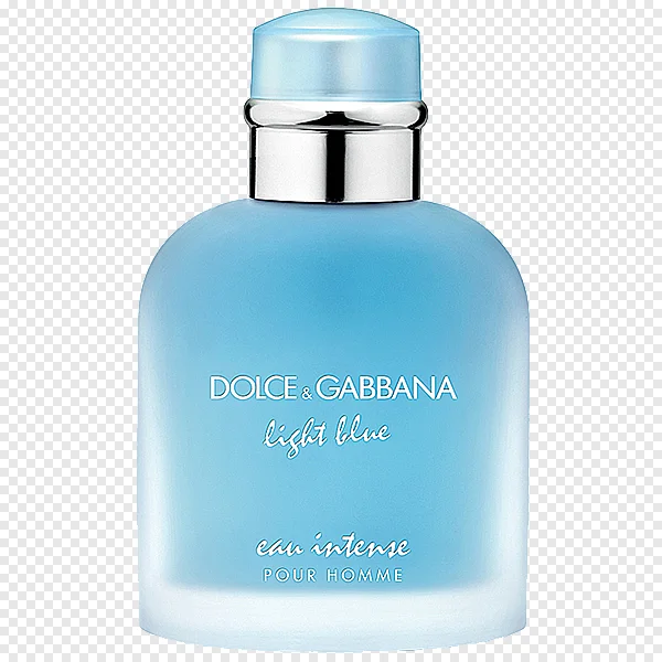 Download this high-quality, transparent PNG image of the iconic Dolce & Gabbana Light Blue Eau Intense Pour Homme perfume bottle for free. Perfect for graphic designers, beauty bloggers, e-commerce stores, or anyone needing a sleek, masculine fragrance visual. The elegant light blue bottle with its frosted base and silver accents captures the refreshing essence of this popular men's scent. Enhance your projects with this premium, ready-to-use perfume PNG. Get your free download today and add a touch of luxury to your designs!