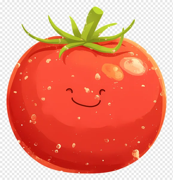 Discover our adorable free PNG of a happy smiling cartoon tomato! This vibrant red vegetable illustration features a cute face, green stem, and charming water droplet details, perfect for adding a touch of cheer to your projects. Ideal for food blogs, recipe cards, kids' designs, healthy eating campaigns, or any creative work needing a friendly, transparent background food graphic. Download this high-quality, high-resolution tomato clipart today and brighten up your digital content instantly! Enhance your designs with this cheerful and fresh produce icon, available for free download.