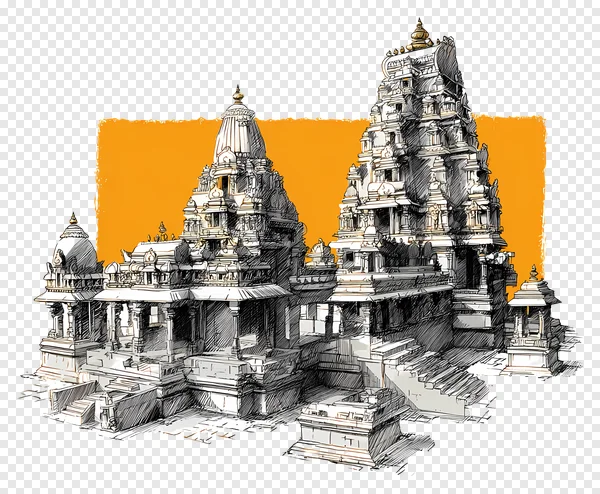 Download this stunning high-resolution PNG image of a detailed sketch of an Indian temple. Perfect for projects related to architecture, history, culture, travel, or religious themes. The intricate details and artistic style make it a unique addition to your design, website, or presentation. Enhance your visual content with this striking image – download now for free!