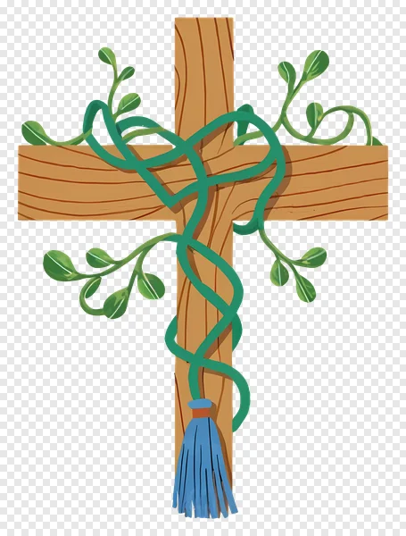 Tags: Christian Easter PNG blue tassel cross faith graphic green vine growth illustration leaves life nature religious symbol renewal spirituality tassel wooden cross