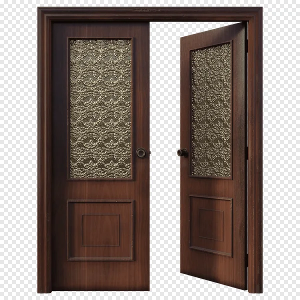 Enhance your designs with this high-quality PNG image of an open wooden door. Featuring intricate glass panels and a rich dark brown finish, this image is perfect for adding a touch of vintage elegance to your projects. Ideal for game assets, interior design mockups, architectural visualizations, and more. Download this free, transparent background PNG now and elevate your creative work!