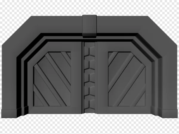 Enhance your game assets or graphic design projects with this high-quality PNG image of a futuristic bunker door. This detailed, grayscale render features a sleek, angular design with textured panels, perfect for adding a touch of industrial sci-fi aesthetic to your work. The transparent background ensures seamless integration into any project. Download now and unlock the potential of this versatile asset!
