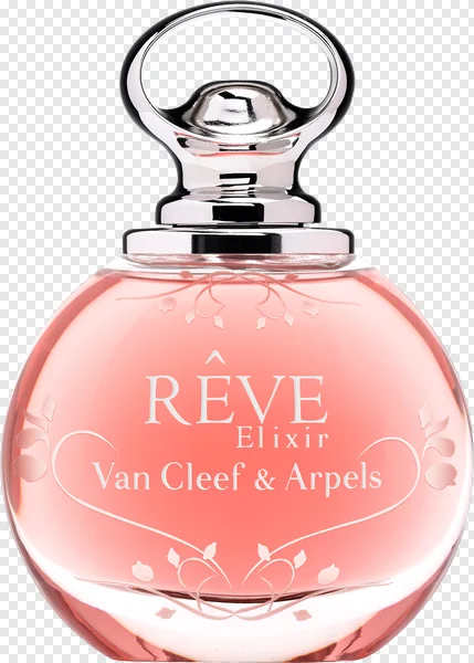 Immerse your projects in elegance with this stunning Van Cleef & Arpels Rêve Elixir perfume bottle PNG. Featuring the iconic round glass bottle filled with a beautiful pink-hued fragrance, detailed with exquisite etched floral patterns and a distinctive silver loop cap. This high-resolution, transparent image is perfect for beauty blogs, luxury product mockups, e-commerce graphics, advertising campaigns, or any design project needing a touch of sophistication. Download this premium perfume bottle PNG for free and elevate your visual content today!