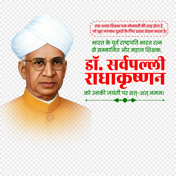 Tags: Bharat Ratna Dr. Sarvepalli Radhakrishnan Hindi quote Indian leader Jayanti Shikshak Diwas Teacher's Day education educators former President of India free PNG download great teacher inspirational quote motivational philosopher portrait social media graphic transparent image tribute wisdom