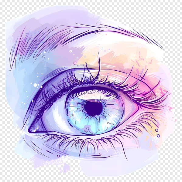 Immerse yourself in the captivating beauty of this free high-quality PNG featuring a stunning blue eye rendered in a dreamy watercolor style. With its vibrant purple and pink hues, intricate long eyelashes, and ethereal aesthetic, this transparent illustration is perfect for adding a touch of fantasy to your creative projects. Download this artistic eye graphic today for album covers, social media, digital art, or any design needing a mystical, elegant focal point. Enhance your designs with this unique, expressive eye art!