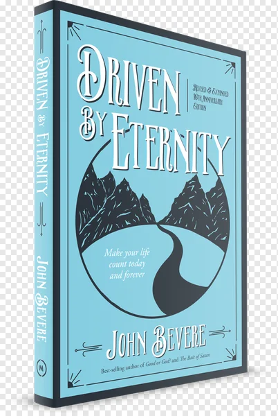 Download the high-quality, free PNG of John Bevere's "Driven By Eternity" book cover. This Revised & Expanded 10th Anniversary Edition features a striking light blue design with dark gray mountains and a winding path, symbolizing a journey of purpose and eternal perspective. The cover includes the powerful quote "Make your life count today and forever." Perfect for promoting spiritual growth content, creating inspiring graphics, or adding a professional touch to your website. Get this transparent 3D book render for your digital projects. Ideal for religious themes, self-help, Christian ministry resources, and motivational content. Enhance your designs with this iconic book visual – completely free to download!