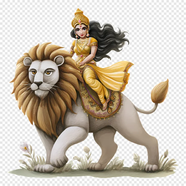 Download this Durga - Mythical Woman Riding a Lion PNG image with transparent background which is free of cost. You don't need to remove background anymore. Scroll down to download more similar styles of Durga PNG images. They are perfectly suitable for designing presentations, stickers, banners or sharing on social media.