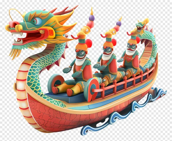 Tags: 3D illustration Asian festival Chinese New Year Chinese dragon Dragon Boat Festival Dragon boat PNG cartoon characters cultural celebration digital art festive boat free download mythological creature oriental rowing figures traditional design transparent background unique characters vibrant colors