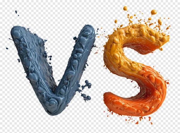Experience the vibrant clash of colors with this stunning free PNG image featuring the letters 'VS' dynamically rendered in splashing liquid. The 'V' is formed by a cool, textured blue fluid, contrasting sharply with the energetic orange and yellow gradient of the 'S'. Each letter bursts with visual energy, adorned with realistic drips, splatters, and a glossy, viscous texture, suggesting powerful movement and a bold statement. Perfect for projects requiring a sense of comparison, competition, or choice, this high-resolution graphic symbolizes opposition or side-by-side display. Ideal for game covers, sports events, product comparisons, marketing materials, or any design needing an impactful 'versus' graphic with a modern, artistic flair. Download this transparent PNG for free and elevate your designs with its striking visual appeal and energetic contrast!
