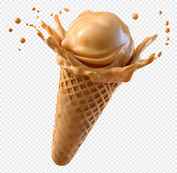 Download this captivating, free PNG image featuring a luscious scoop of rich caramel ice cream dynamically splashing in a crisp waffle cone. Perfect for adding a sweet, energetic touch to your graphic design projects, food blogs, menus, or marketing materials. The transparent background makes it easy to integrate into any design, ensuring seamless use. Get this high-resolution dessert delight instantly to enhance your web and print creations. Indulge your senses and elevate your visuals with this mouth-watering, golden-brown treat, complete with flying droplets for a vibrant, irresistible effect.